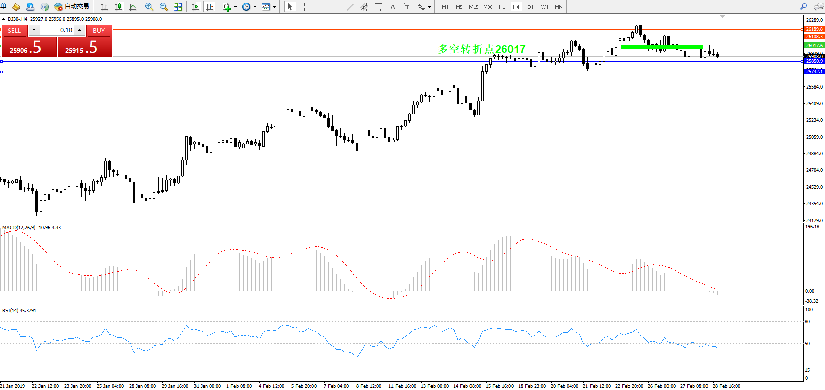 美国股市在昨日星期四走低,其中基础材料、石油和天然气和科技等下跌的板块带领股指走低。道琼斯工业平均指数跌69.16点,跌幅0.27%,报25916.00点,2月份累涨约3.67%,1-2月累涨约11.10%。道指1-2月表现创1987年以来同期最佳。美国四季度GDP回落至2.6%,全年增速跌破3%但创2015年来最高。