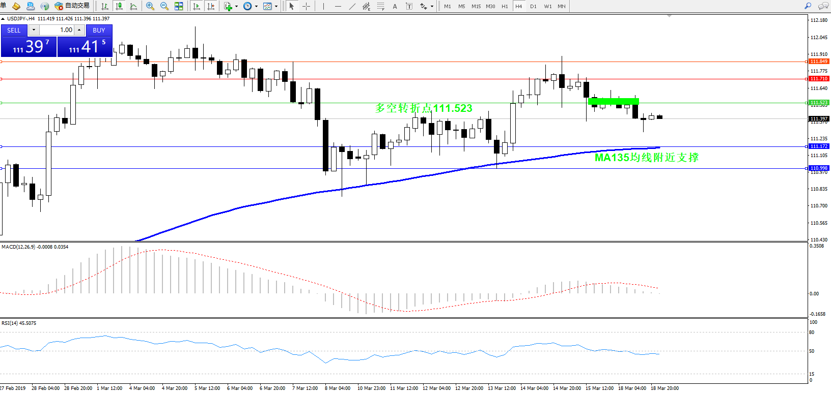 备选策略:111.523上方看涨,目标111.710、111.849