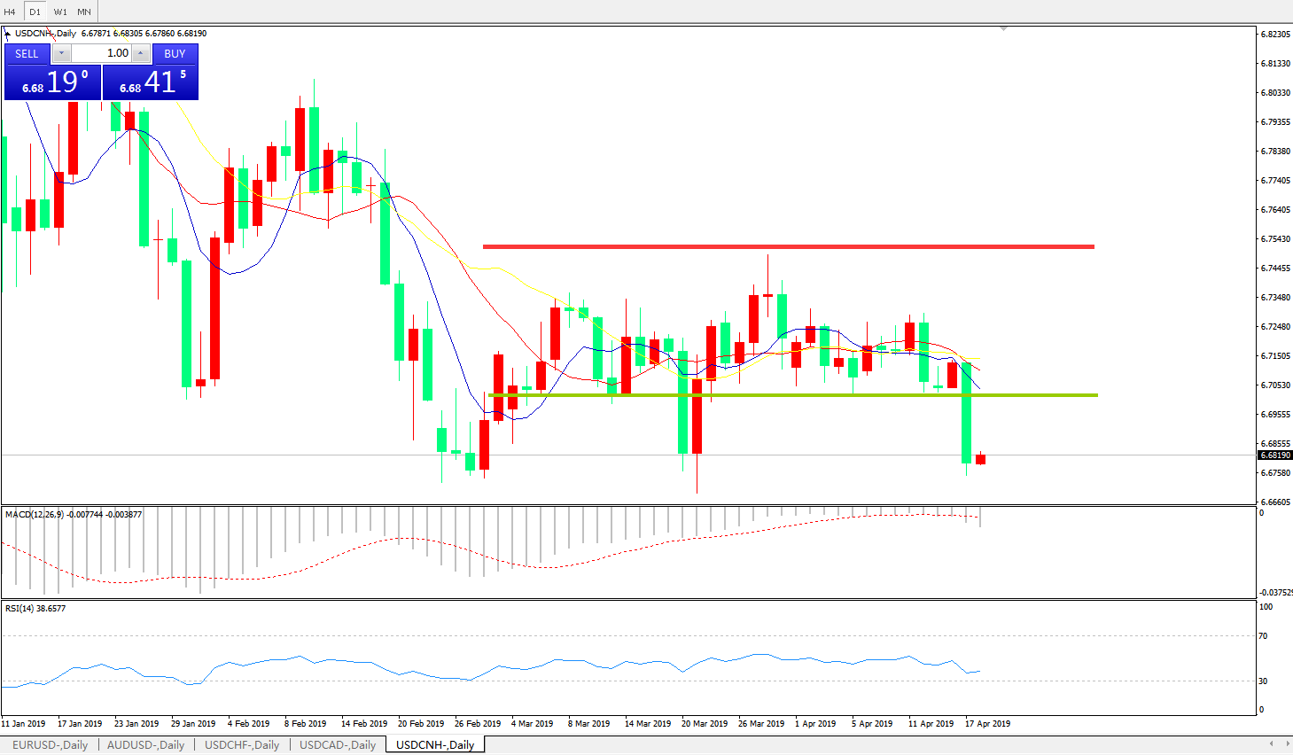交易策略6.6990之下,看跌,目标价位为6.6730,然后为6.6325