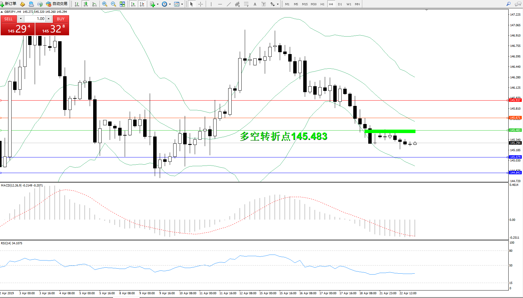 交易策略:145.483下方看跌,目标145.079、144.843