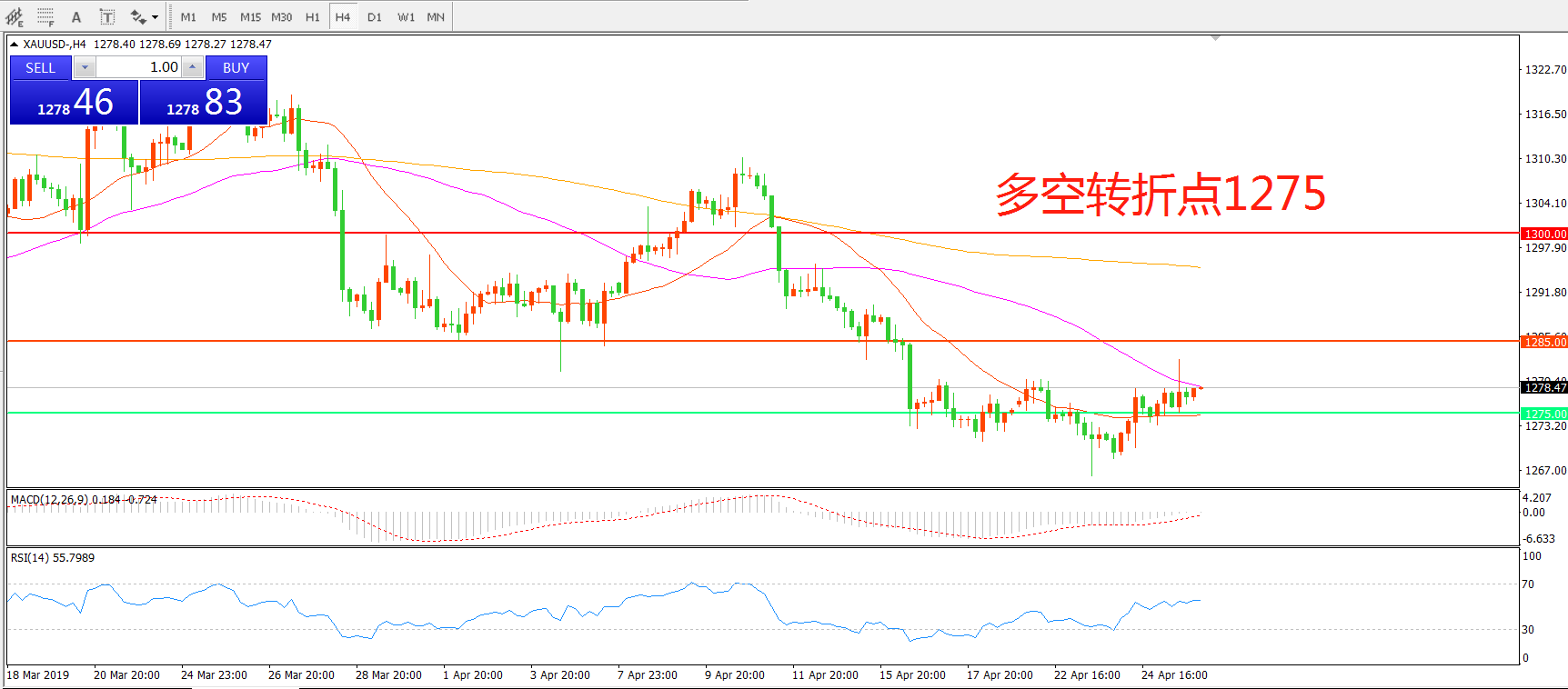 多空转折点:1275.00
