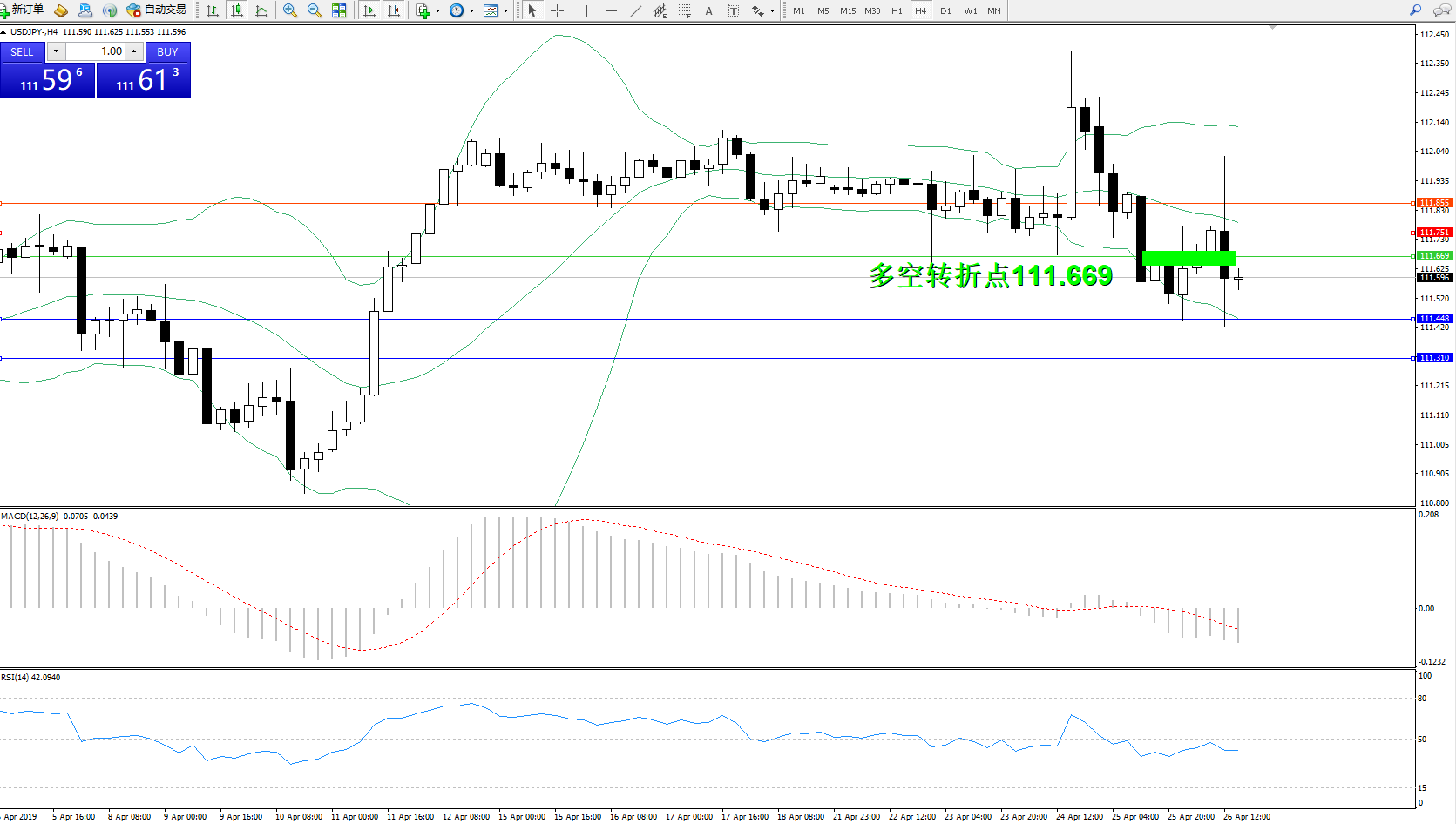 交易策略:111.669下方看跌,目标111.448111.310