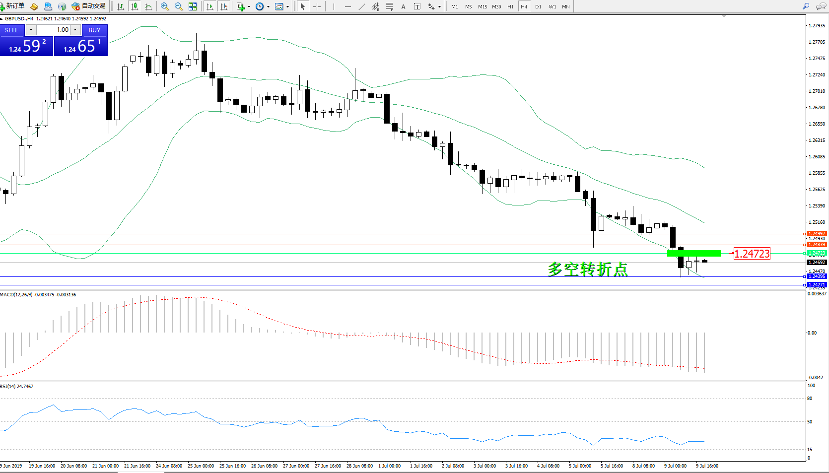 交易策略:1.24723下方看跌,目标1.24395、1.24271