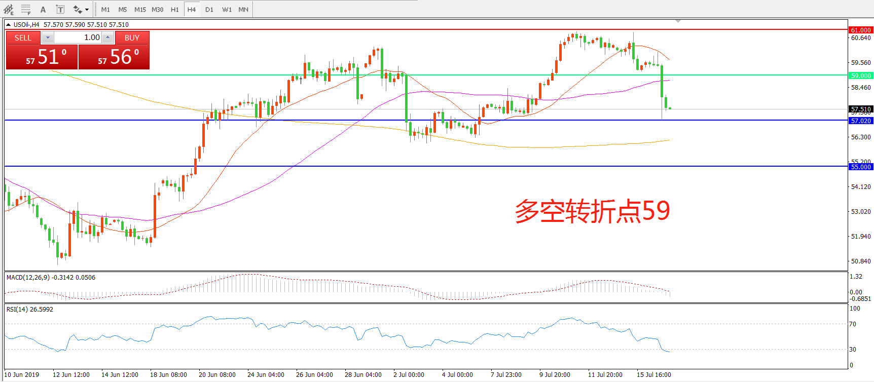 交易策略:在59.00之下看跌,目标57.00    55.00
