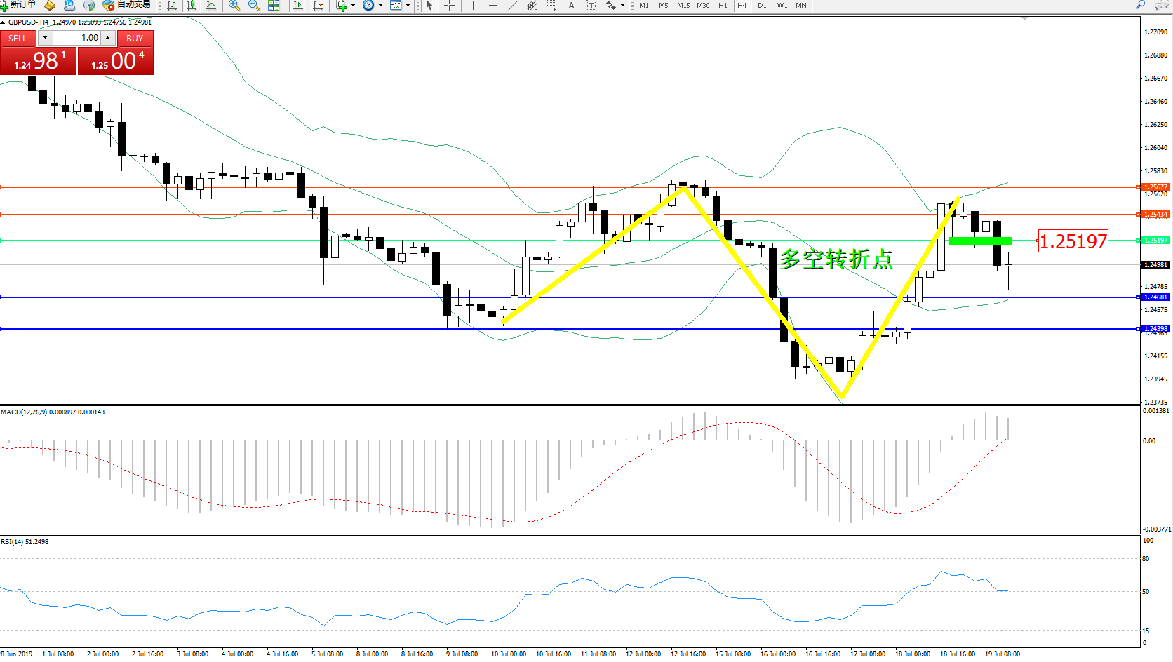 英镑美元GBPUSD ——4小时K线图显示: