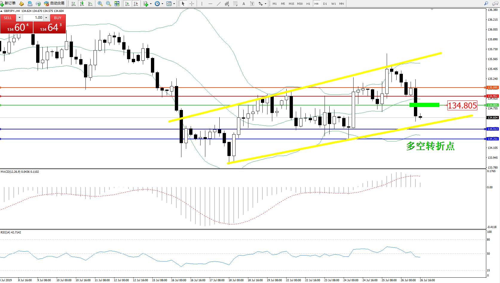 交易策略:134.805下方看跌,目标134.413134.251
