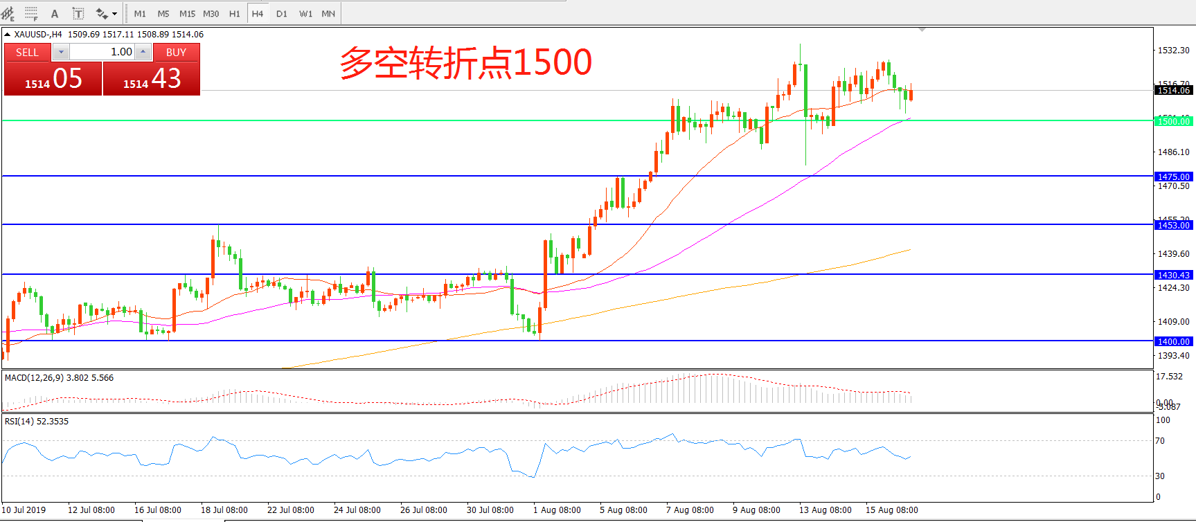 多空转折点:1500.00