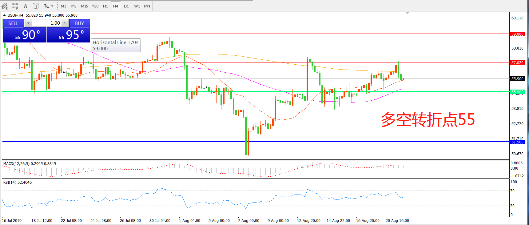 多空转折点:55.00