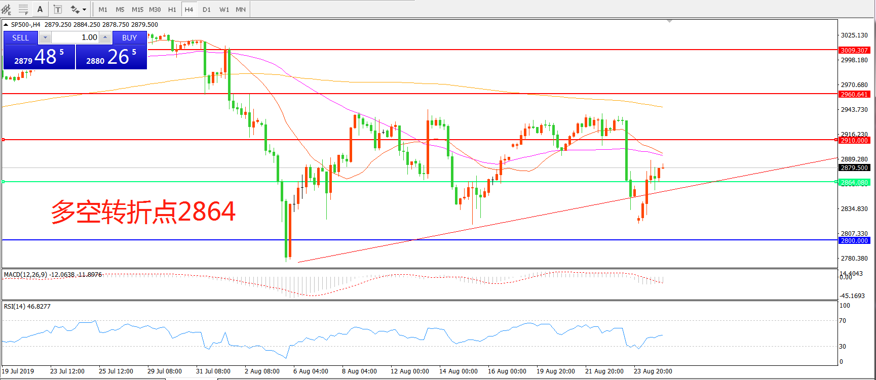 多空转折点:2864.00