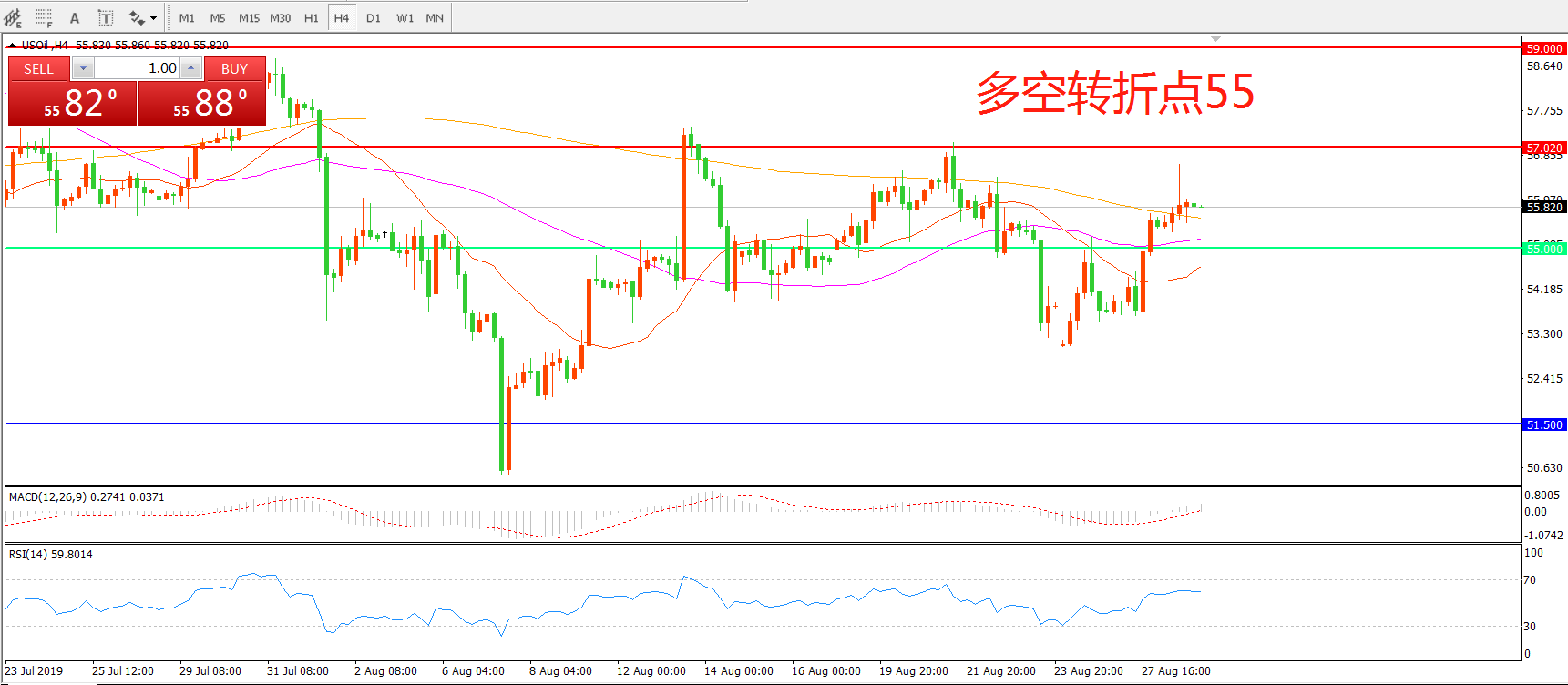 多空转折点:55.00
