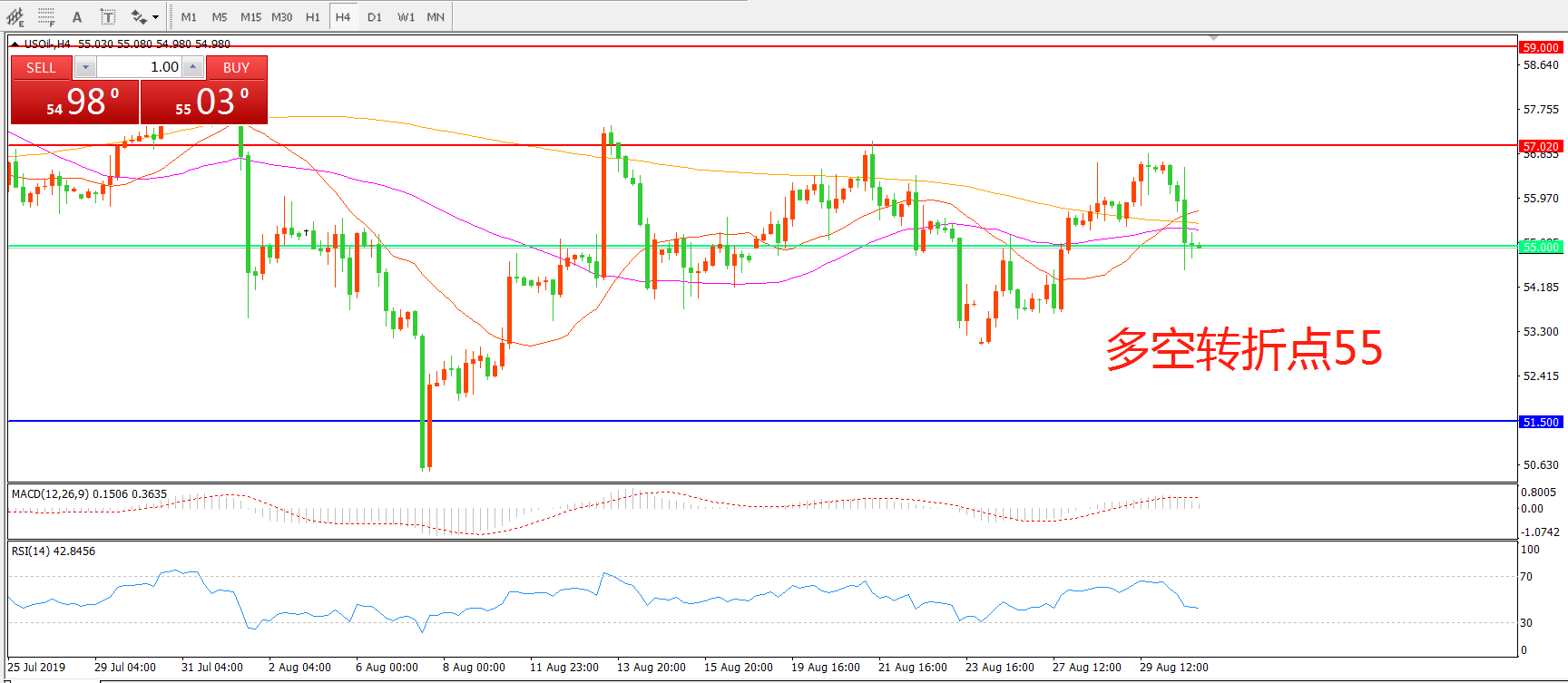 多空转折点:55.00