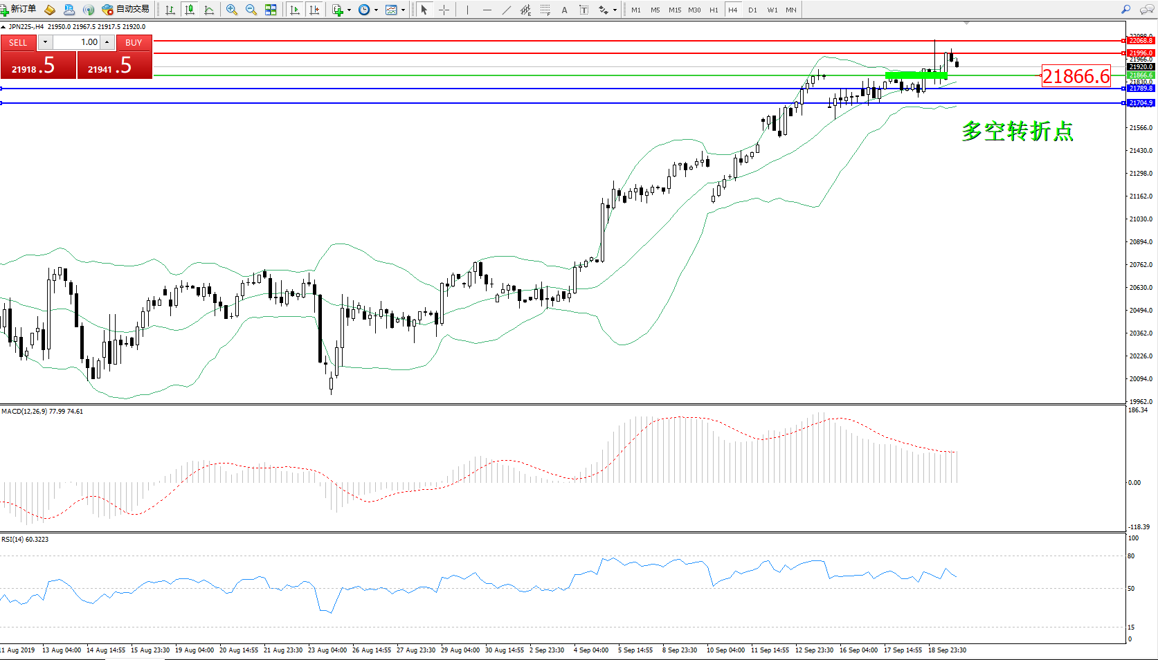 日经225指数919日(周四)收盘上涨107.29点,涨幅0.49%,报22068.00点。日本央行维持基准利率为-0.1%不变。至少在2020年春季之前维持超低的利率。维持资产购买不变。日本央行近期不太可能进行额外宽松政策,但在10月底的会议上采取行动的可能性高。鉴于海外经济放缓和物价可能疲软,央行或将重新审视经济和物价状况。