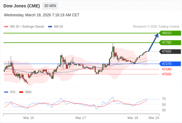 在 47270 之上,看涨,目标价位为 47780 ,然后为 48010 。