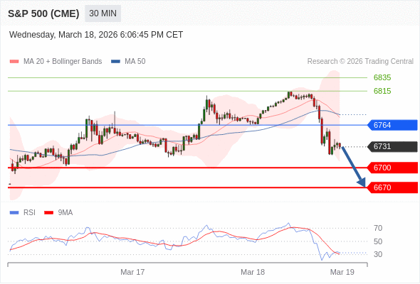 在 6764 之下,看跌,目标价位为 6700 ,然后为 6670 。