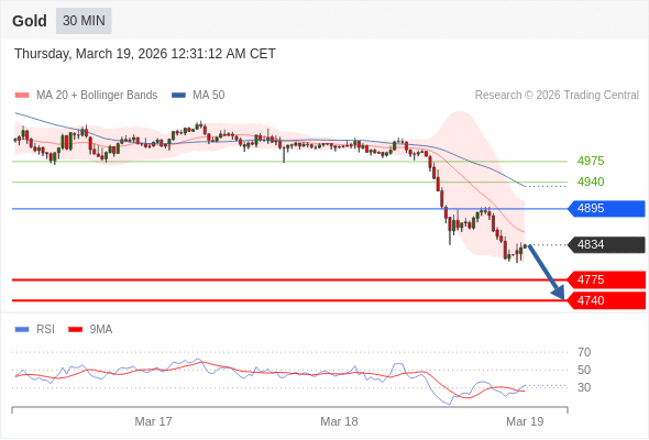 交易策略: 在 4895 之下,看跌,目标价位为 4775 ,然后为 4740 。