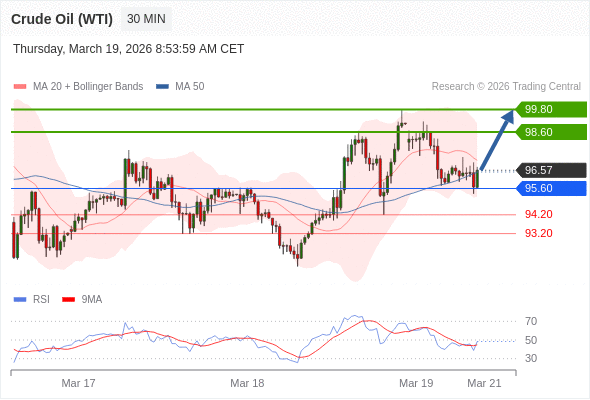 在 95.60 之上,看涨,目标价位为 98.60 ,然后为 99.80 。