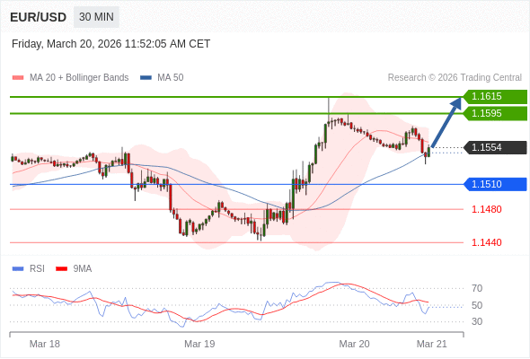 在 1.1510 之上,看涨,目标价位为 1.1595 ,然后为 1.1615 。