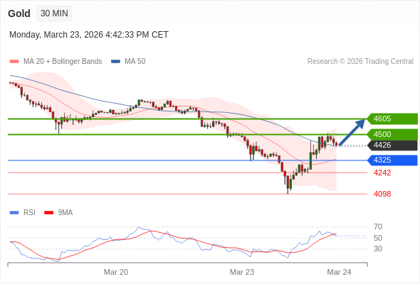 在 4325 之上,看涨,目标价位为 4500 ,然后为 4605 。