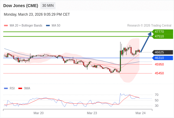 在 46310 之上,看涨,目标价位为 47510 ,然后为 47770 。