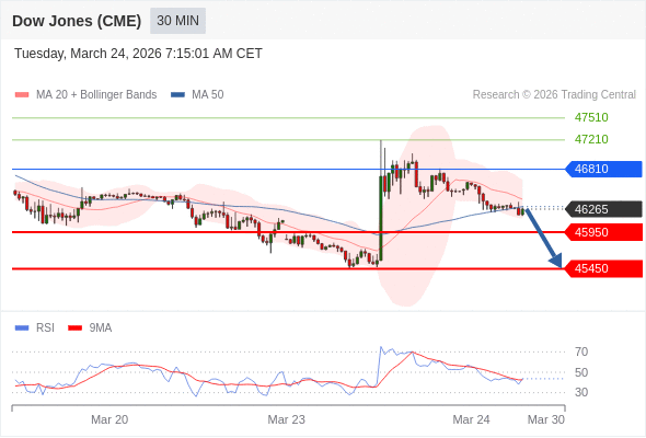 在 46810 之下,看跌,目标价位为 45950 ,然后为 45450 。