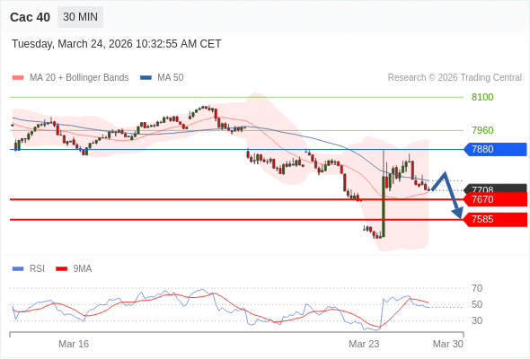 在 7880 之下,看跌,目标价位为 7670 ,然后为 7585 。