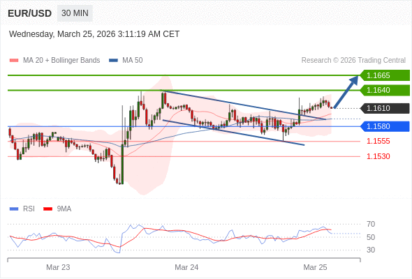 在 1.1580 之上,看涨,目标价位为 1.1640 ,然后为 1.1665 。