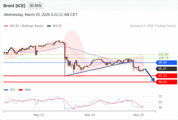 交易策略: 在 98.40 之下,看跌,目标价位为 91.70 ,然后为 88.60 。