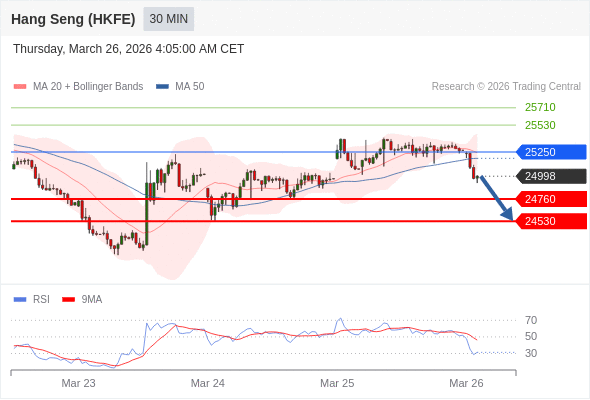 在 25250 之下,看跌,目标价位为 24760 ,然后为 24530 。