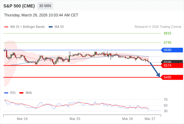 在 6690 之下,看跌,目标价位为 6574 ,然后为 6485 。