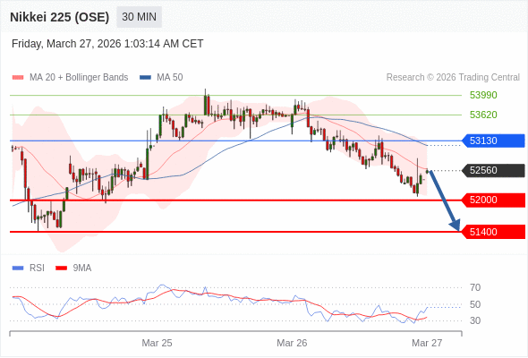 在 53130 之下,看跌,目标价位为 52000 ,然后为 51400 。