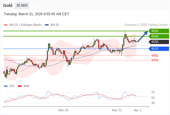 交易策略: 在 4520 之上,看涨,目标价位为 4590 ,然后为 4620 。