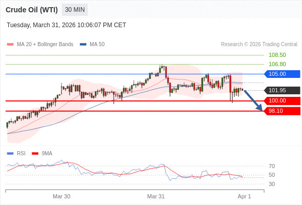 交易策略: 在 105.00 之下,看跌,目标价位为 100.00 ,然后为 98.10 。