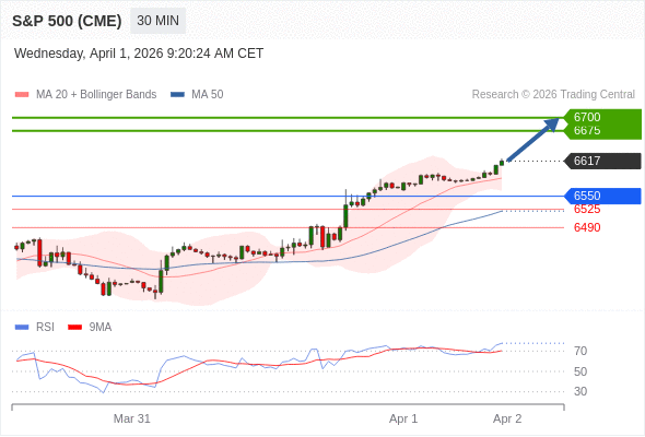 在 6550 之上,看涨,目标价位为 6675 ,然后为 6700 。