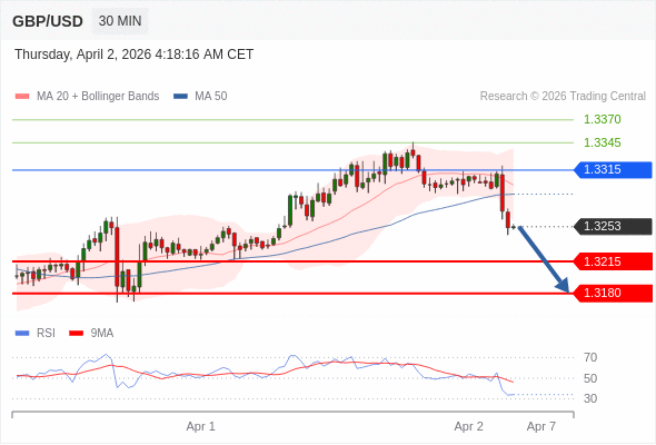 交易策略: 在 1.3315 之下,看跌,目标价位为 1.3215 ,然后为 1.3180 。