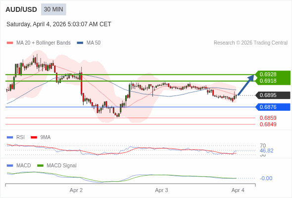 替代方案: 在0.6876以下,期待0.6859和0.6849。
