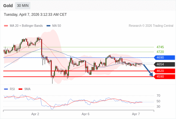 在 4690 之下,看跌,目标价位为 4620 ,然后为 4590 。