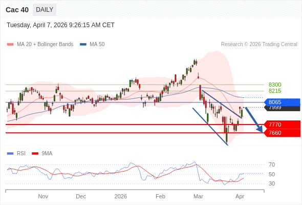 Cac 40 短线: 没有明显变化趋势。
