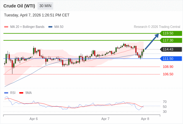 在 111.50 之上,看涨,目标价位为 117.30 ,然后为 119.50 。