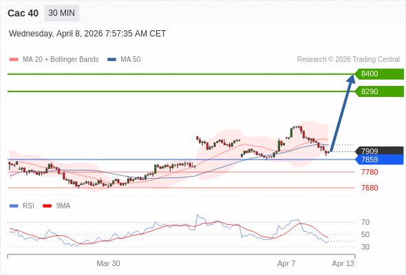 Cac 40 当日内: 上升。