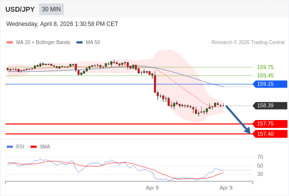在 159.15 之下,看跌,目标价位为 157.75 ,然后为 157.40 。