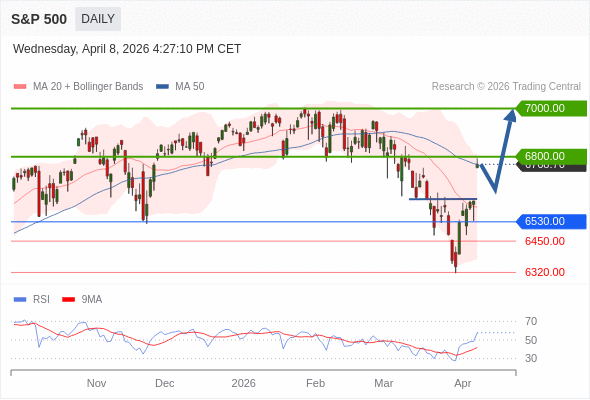 在 6530.00 之上,看涨,目标价位为 6800.00 ,然后为 7000.00 。