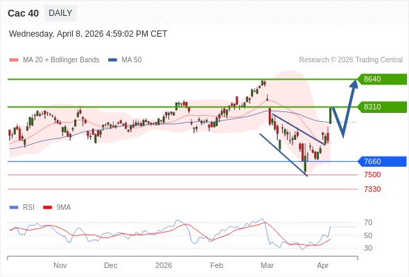 Cac 40 短线: 期待8310。