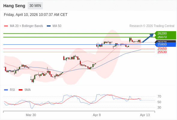 在 25800 之上,看涨,目标价位为 26070 ,然后为 26200 。