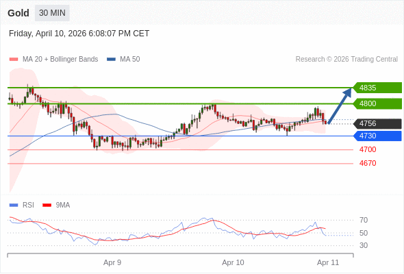 在 4730 之上,看涨,目标价位为 4800 ,然后为 4835 。
