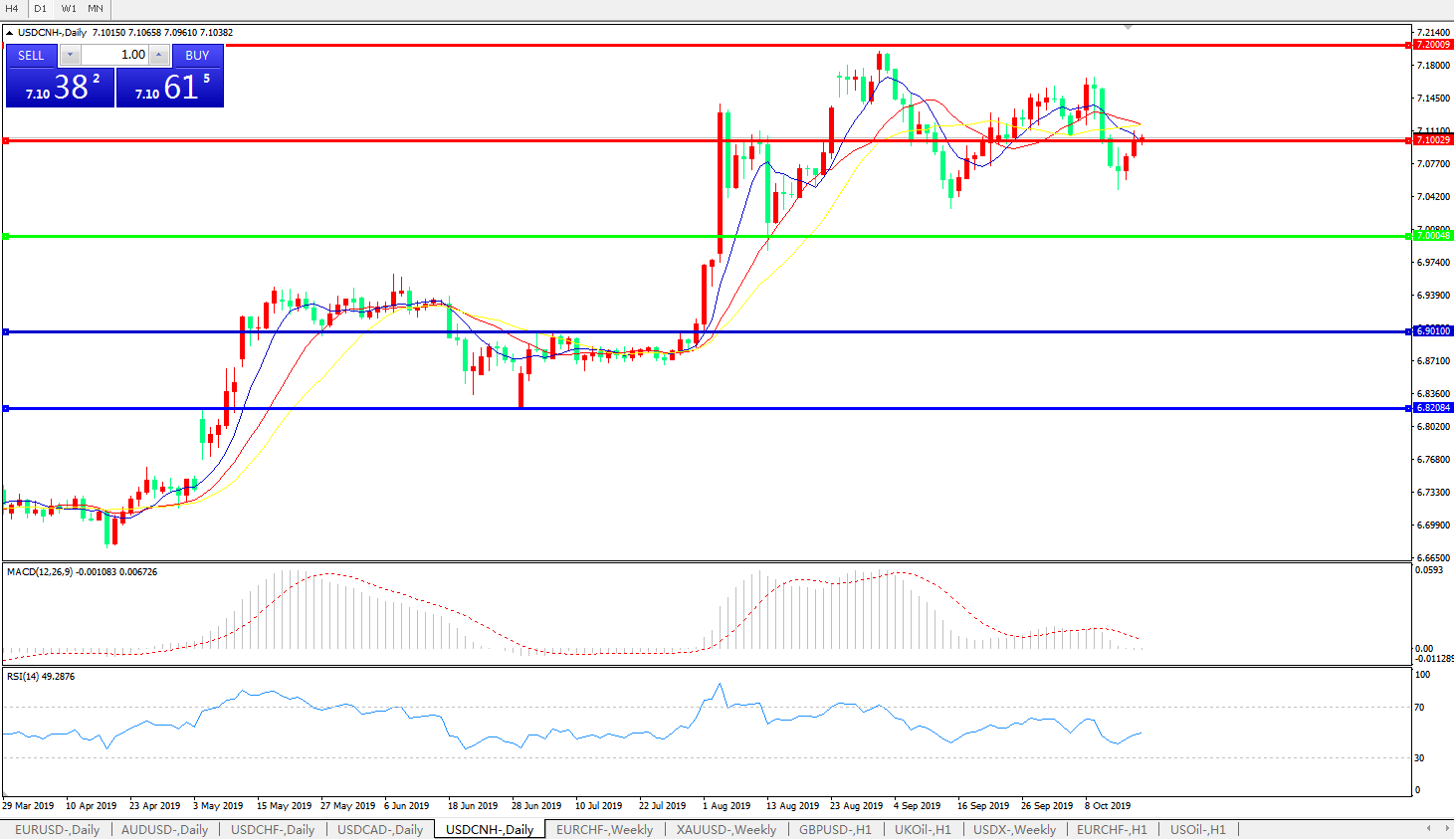 交易策略: 在7.0000之上,看涨,目标价位为7.1000,然后为7.2000。