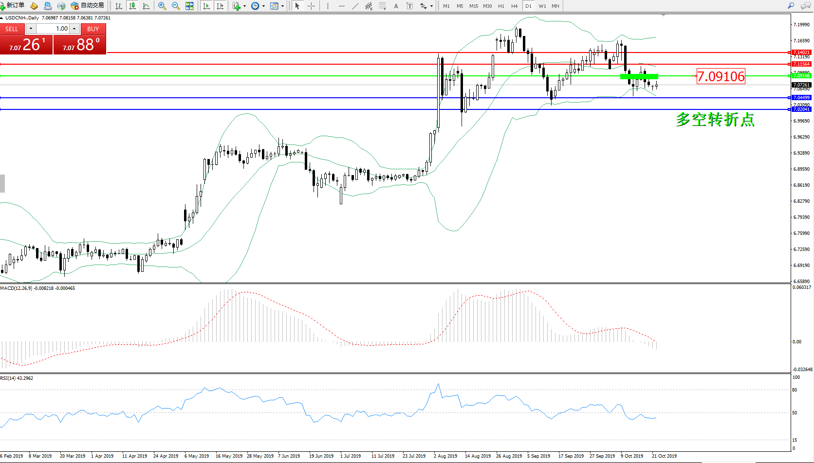 交易策略:7.09106下方看跌,目标7.04499、7.02041