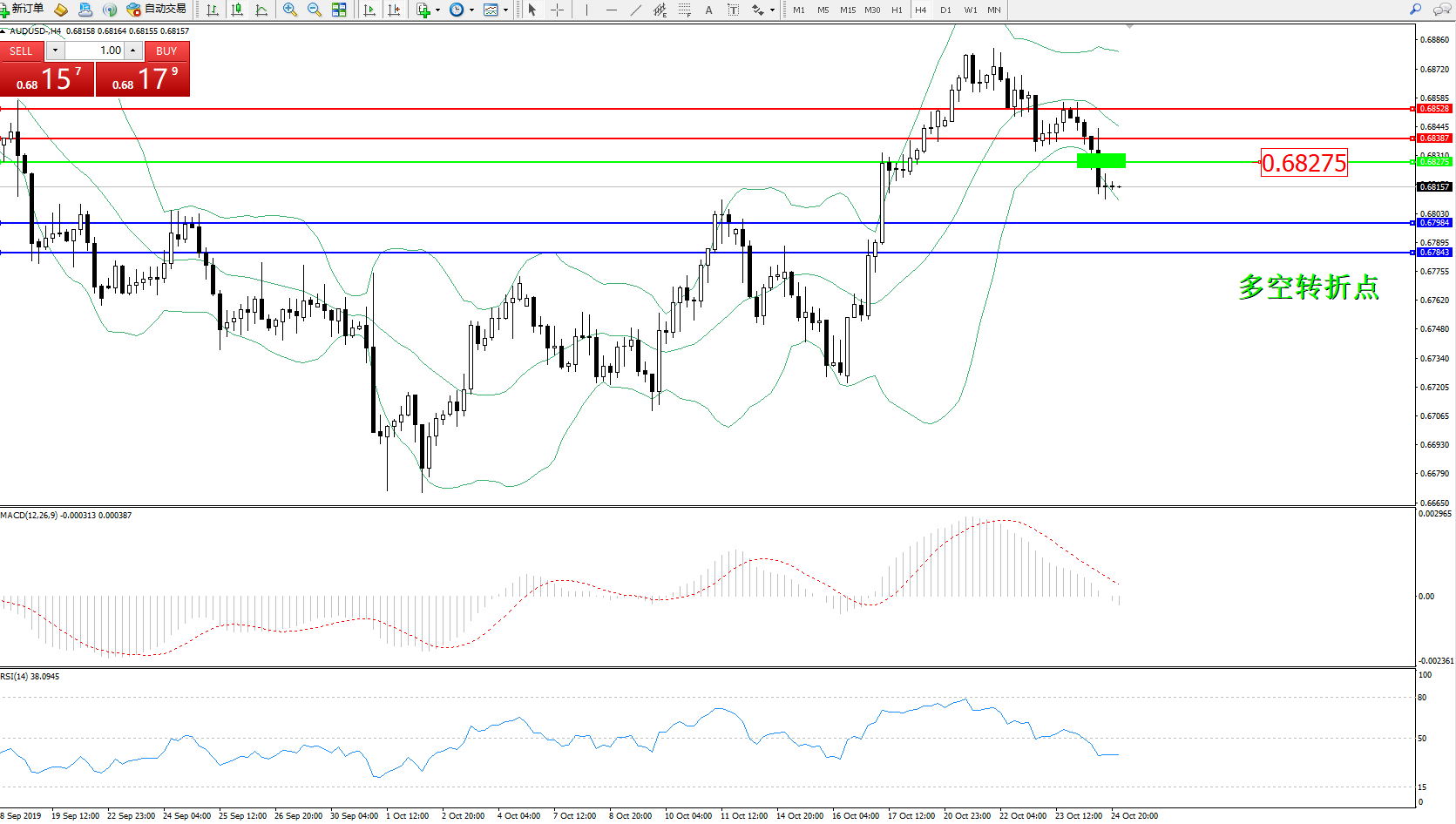 交易策略:0.68275下方看跌,目标0.67984、0.67943