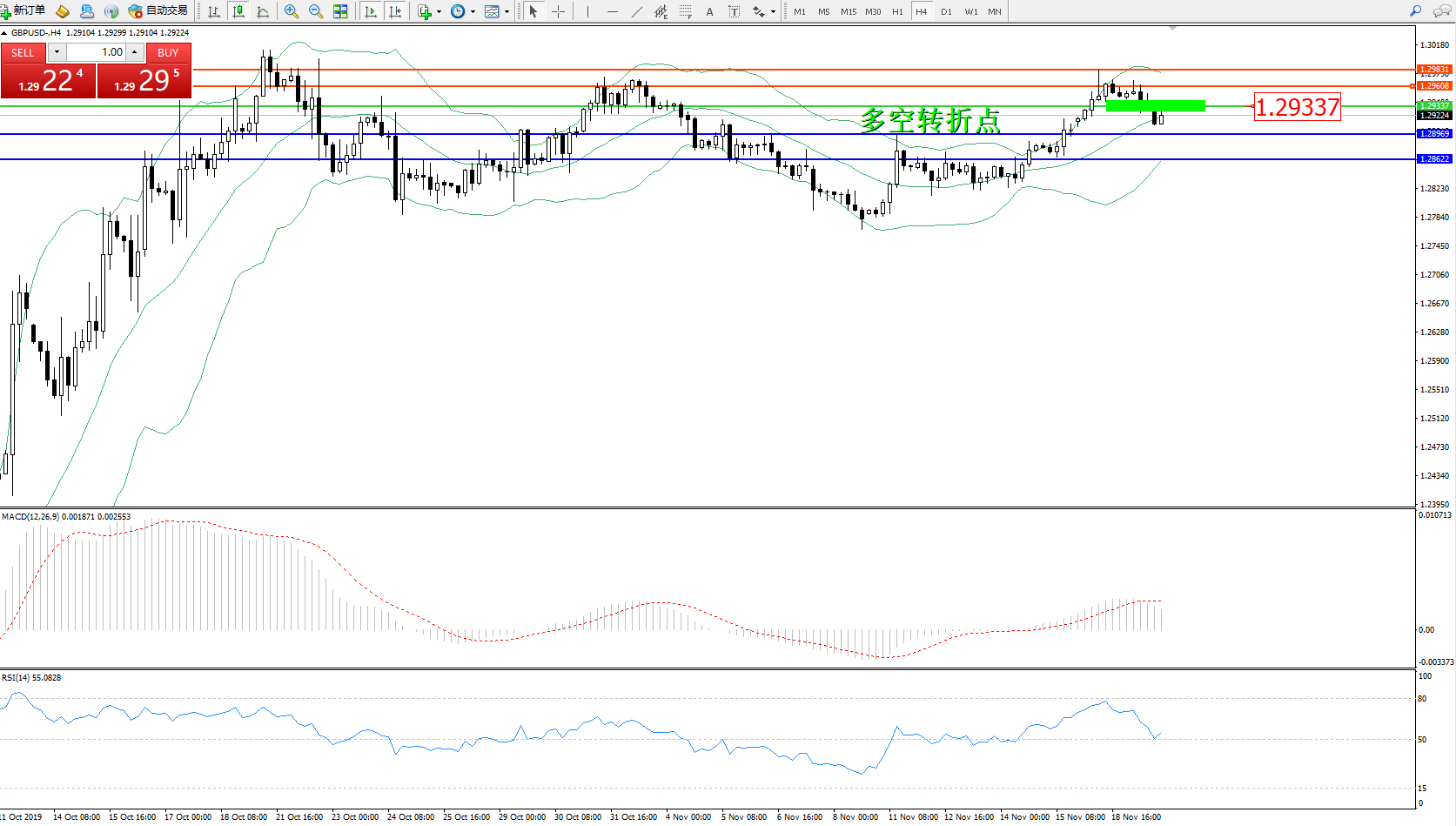 交易策略:1.29337下方看跌,目标1.28969、1.28622