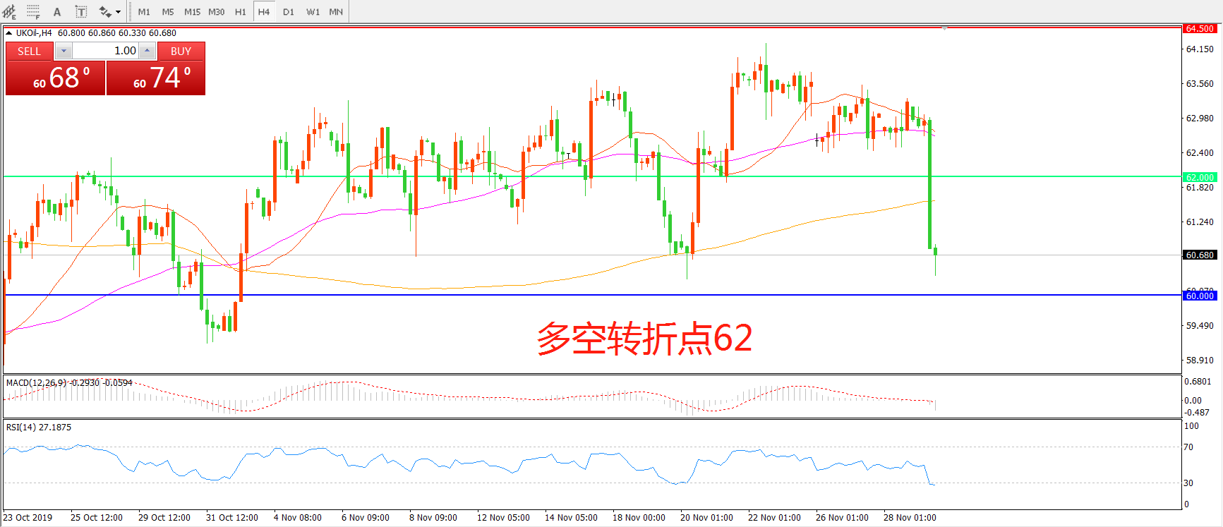 上周五(11月29日),俄罗斯石油部长诺瓦克表示,对于下周OPEC+会议中的限产延期议题,他倾向于暂不延期。消息一出,原油市场掀起惊涛骇浪,布伦特原油掉头大跌,收报60.68美元/桶。