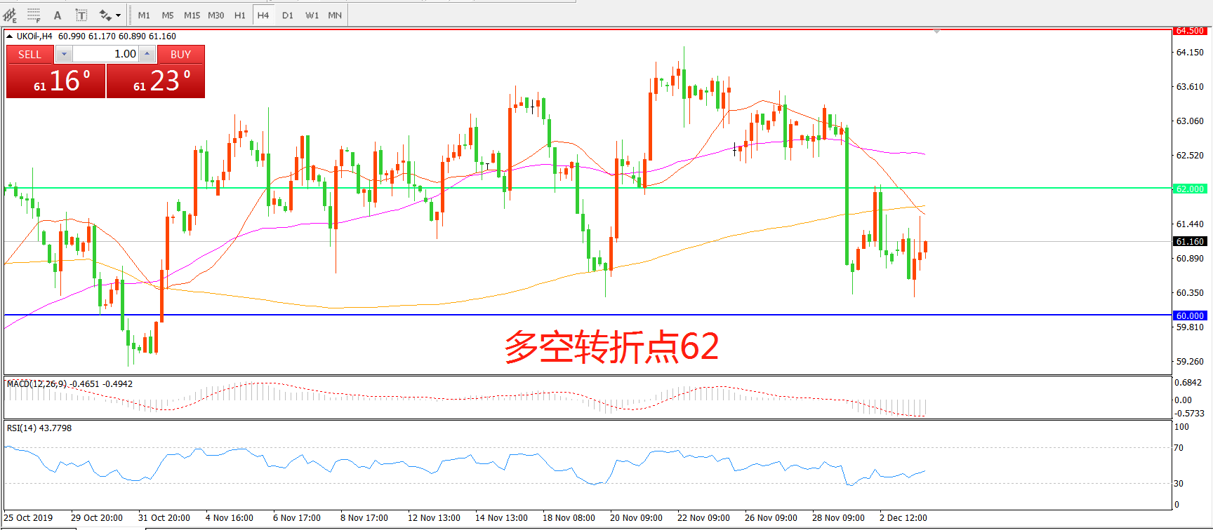 多空转折点:62.00